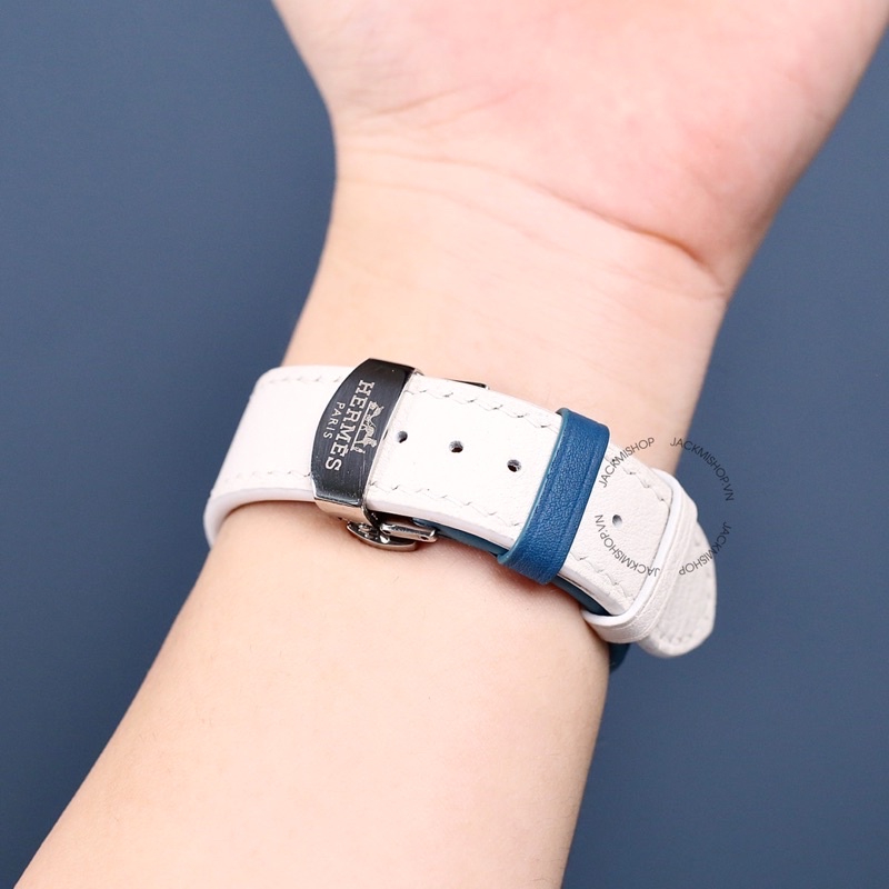 Giới thiệu [DÂY DA THẬT] DÂY DA BÊ SWIFT MAY TAY THỦ CÔNG MÀU XANH NAVY/TRẮNG KHÓA BƯỚM CHO APPLE WATCH SERIES 1=>6(BẢO HÀNH 1 NĂM)