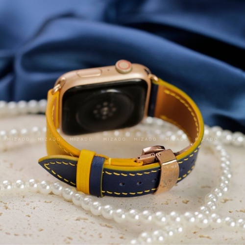 Giới thiệu Dây da thủ công Swift Xanh Navy Mix Vàng dành cho Apple Watch, đồng hồ thông minh, đồng hồ cơ MIZADO
