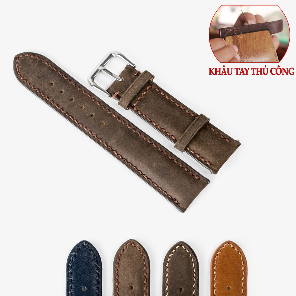 Giới thiệu Dây đồng hồ nam da bò Vintage-khâu tay thủ công D111 size 18mm, 20mm, 22mm, 24mm-Bụi leather