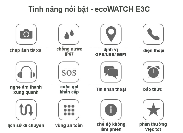 Hè 2018, Công ty ecoYOUNG chính thức ra mắt Đồng hồ định vị ecoWATCH E3C - Chống nước tốt nhất. Không chỉ giữ nguyên các tính năng cực kỳ hữu ích của đồng hồ định vị ecoWATCH E3w: nghe gọi, định vị đa tầng, chống nước, nhắn tin thoại, nghe lé Đồng hồ định vị trẻ em ecoWATCH E3C đã được trang bị thêm 01 camera với tính năng chụp ảnh. Toàn bộ ảnh chụp được sẽ tự động gửi về smartphone, nhờ đó bố mẹ hoàn toàn yên tâm khi biết con đang ở đâu, làm gì và chơi với ai?!