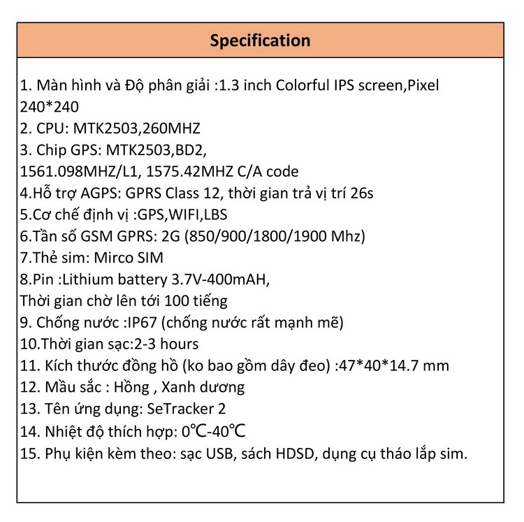 | Phụ kiện đi kèm | 1 Sạc USB1 Dụng cụ tháo lắp sim1 Sách HDSD |