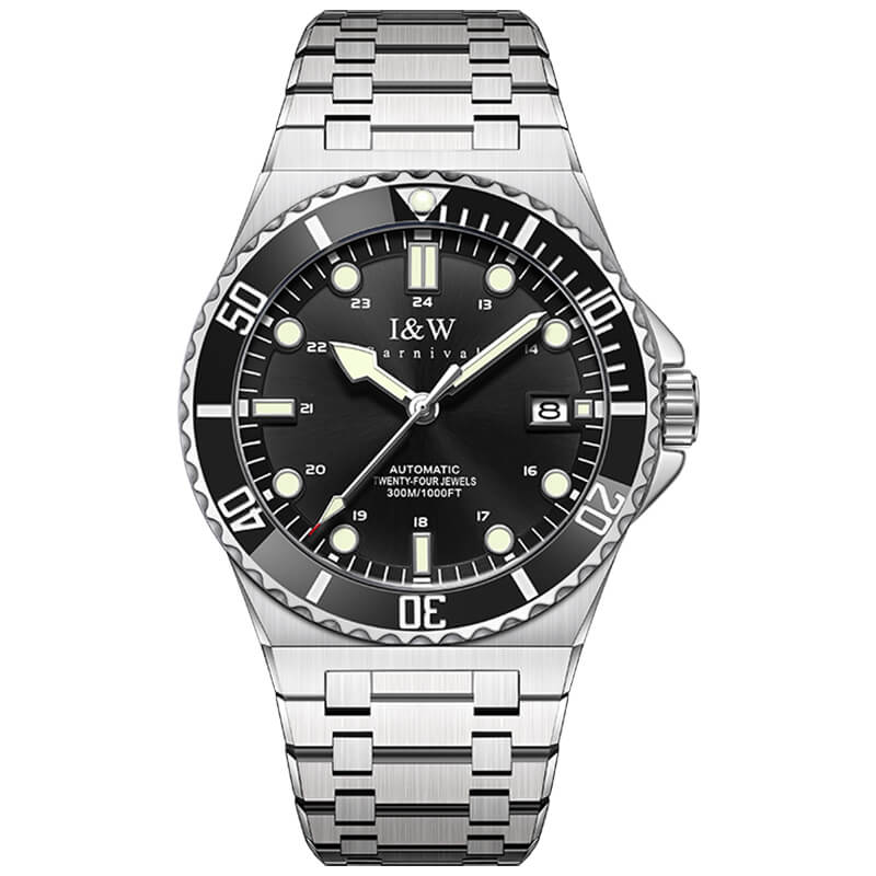 Đồng hồ nam chính hãng I&W Carnival 726G-T2 Hàng mới fullbox ,Kính chống xước,Chống nước 100m,BH 24 tháng,Máy Cơ Automatic,dây kim loại xịn