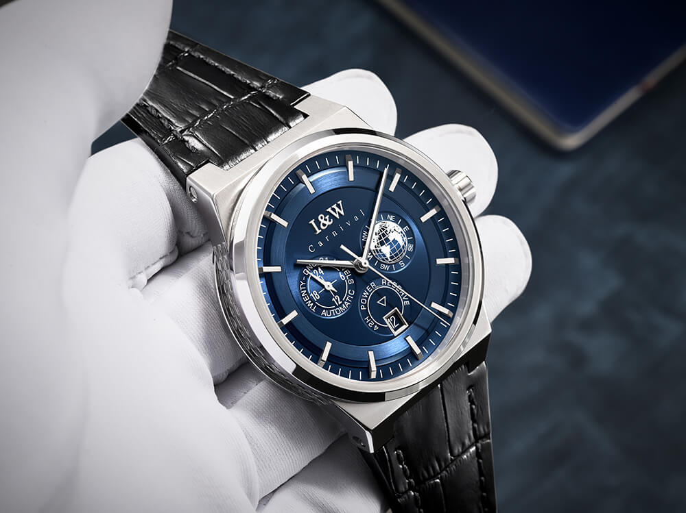 Đồng hồ nam chính hãng I&W Carnival 782G-D2 hàng mới fullbox ,kính sapphire chống xước,chống nước 50m,bảo hành dài hạn,máy cơ (automatic),mặt xanh dây da