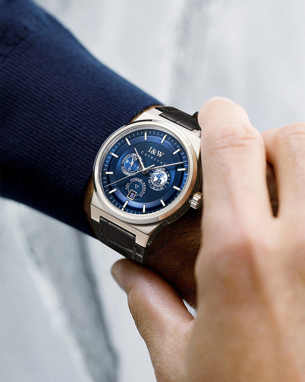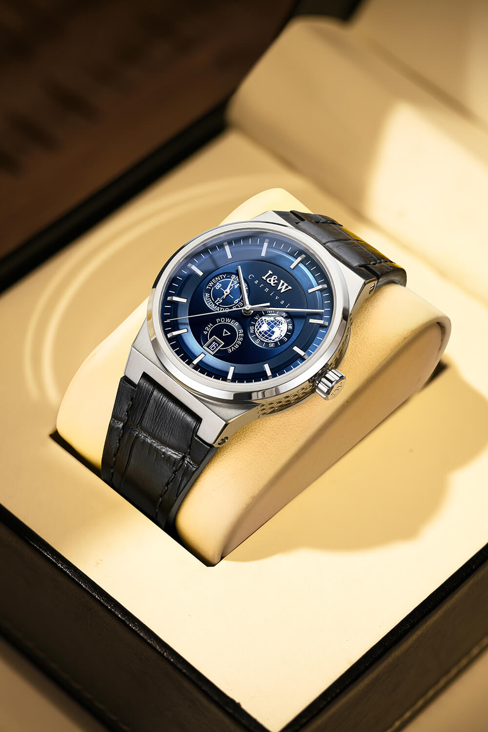 SIÊU PHẨM ĐỒNG HỒ IW CAR.NI.VAL 782G – PHONG CÁCH SANG TRỌNG CHO QUÝ ÔNG MÊ XÊ DỊCH Điểm nhấn độc đáo: Mặt đồng hồ nhỏ trang trí địa cầu 3D – Hình ảnh địa cầu nổi khối kết hợp các ký hiệu phương hướ...