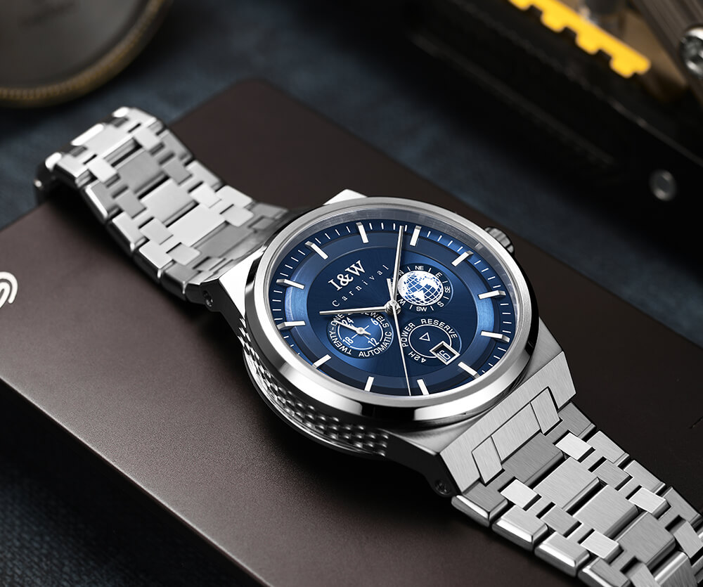 Đồng hồ nam chính hãng I&W Carnival 782G-T2 hàng mới fullbox ,kính sapphire chống xước,chống nước 50m,bảo hành dài hạn,máy cơ (automatic),mặt xanh dây thép không gỉ