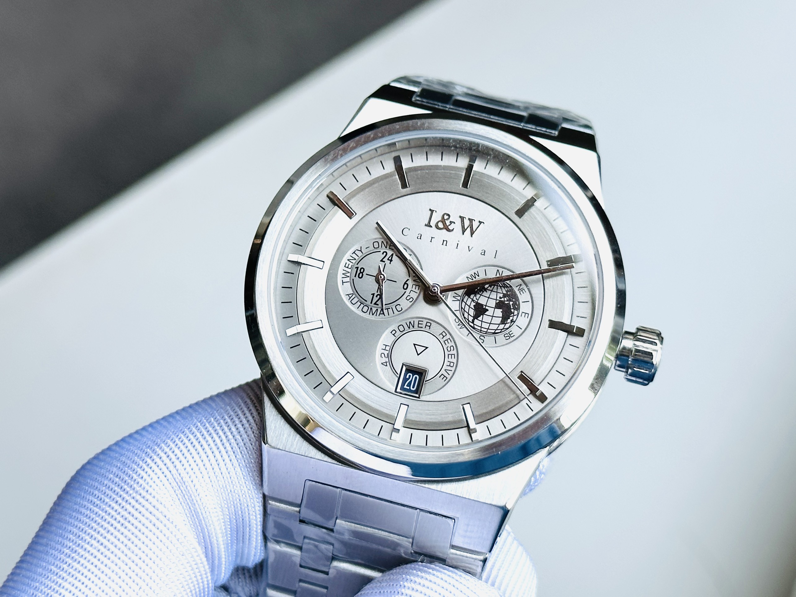 SIÊU PHẨM ĐỒNG HỒ IW CAR.NI.VAL 782G – PHONG CÁCH SANG TRỌNG CHO QUÝ ÔNG MÊ XÊ DỊCH Điểm nhấn độc đáo: Mặt đồng hồ nhỏ trang trí địa cầu 3D – Hình ảnh địa cầu nổi khối kết hợp các ký hiệu phương h...
