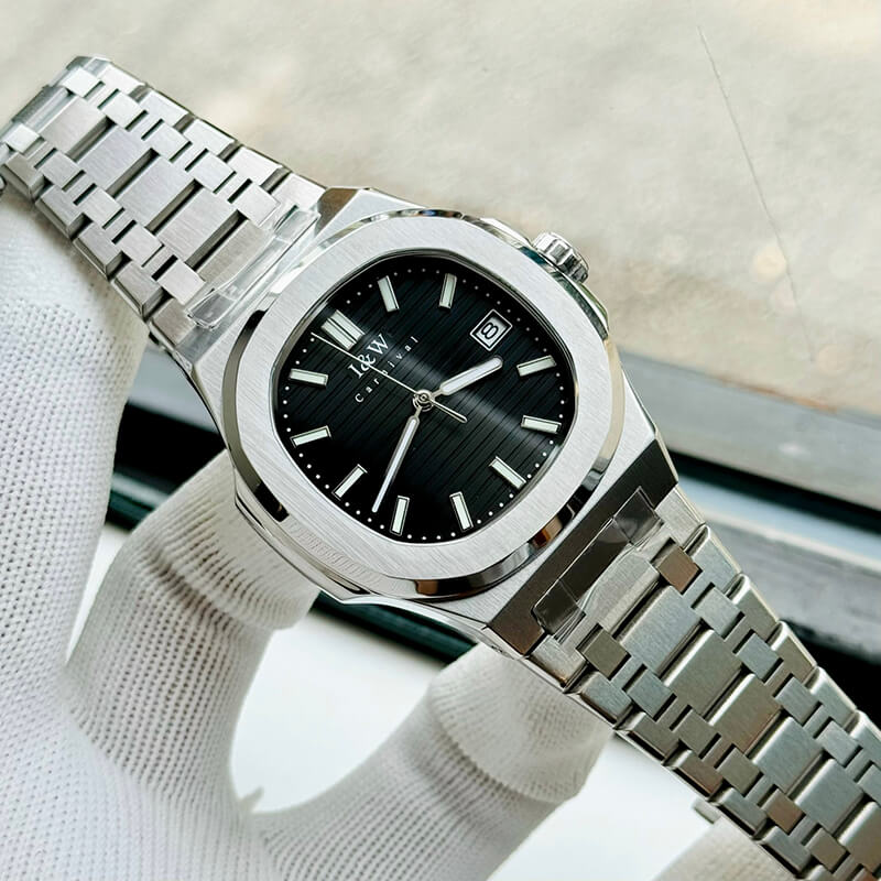 Mặt số đen vân ngang – hiệu ứng chiều sâu, nhìn gọn – lịch lãm