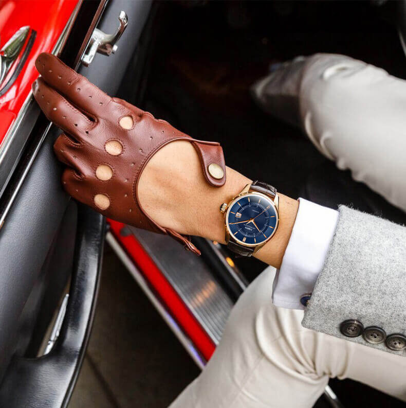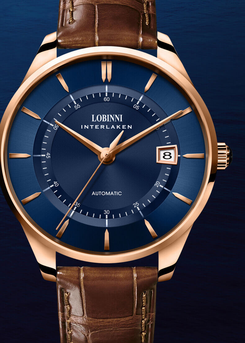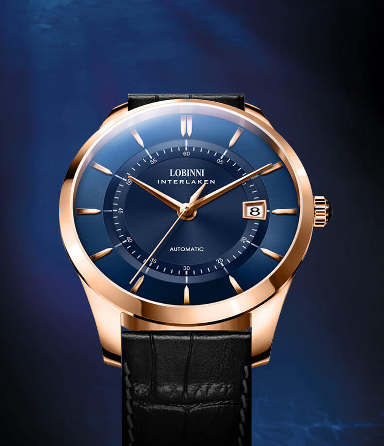 LOBINNI L5020-1 - PHONG ĐỘ LÀ NHẤT THỜI, ĐẲNG CẤP LÀ MÃI MÃI Đơn giản nhưng tạo được dấu ấn, cổ điển nhưng trường tồn với thời gian chính là những gì tạo nên đẳng cấp của series Lobinni. Chiếc kim giây lướt mượt mà trên nền số của Cá Nhảy chính vì thế mà khiến các quý ông chưa bao giờ thôi thổn thức.  THIẾT KẾ TỐI GIẢN: sử dụng lối thiết kế 3 kim - 1 lịch truyền thống, các chi tiết có độ lớn vừa phải và hài hòa.  Chính vì vậy mà mặt số chải tia mặt trời được dịp phô diễn hết vẻ đẹp tinh tế, độ hoàn thiện của từng ngóc ngách được chú trọng, tỉ mỉ đến cầu toàn.  MẠ VÀNG HỒNG KÈM MÀU XANH THANH LỊCH: sắc mạ vàng hồng khiến tác phẩm thời gian trở nên sang trọng và thời thượng để xứng đáng ngự trên tay của quý ông lịch lãm. Mặt xanh và dây đeo xanh tôn thêm vẻ trẻ trung, phong cách cho quý ông  MÁY MIYOTA 8215 MƯỢT MÀ: Cỗ máy được đánh giá bền bỉ bậc nhất hiện nay. Như hầu hết máy đồng hồ cơ Nhật Bản, máy Miyota 8215 có tần số dao đồng 21600 vph, điều này đảm bảo cho nó 4 ưu điểm: 1-Chính Xác, 2-Bền Bỉ, 3-Ít Bảo Dưỡng, 4-Tiết Kiệm Năng Lượng