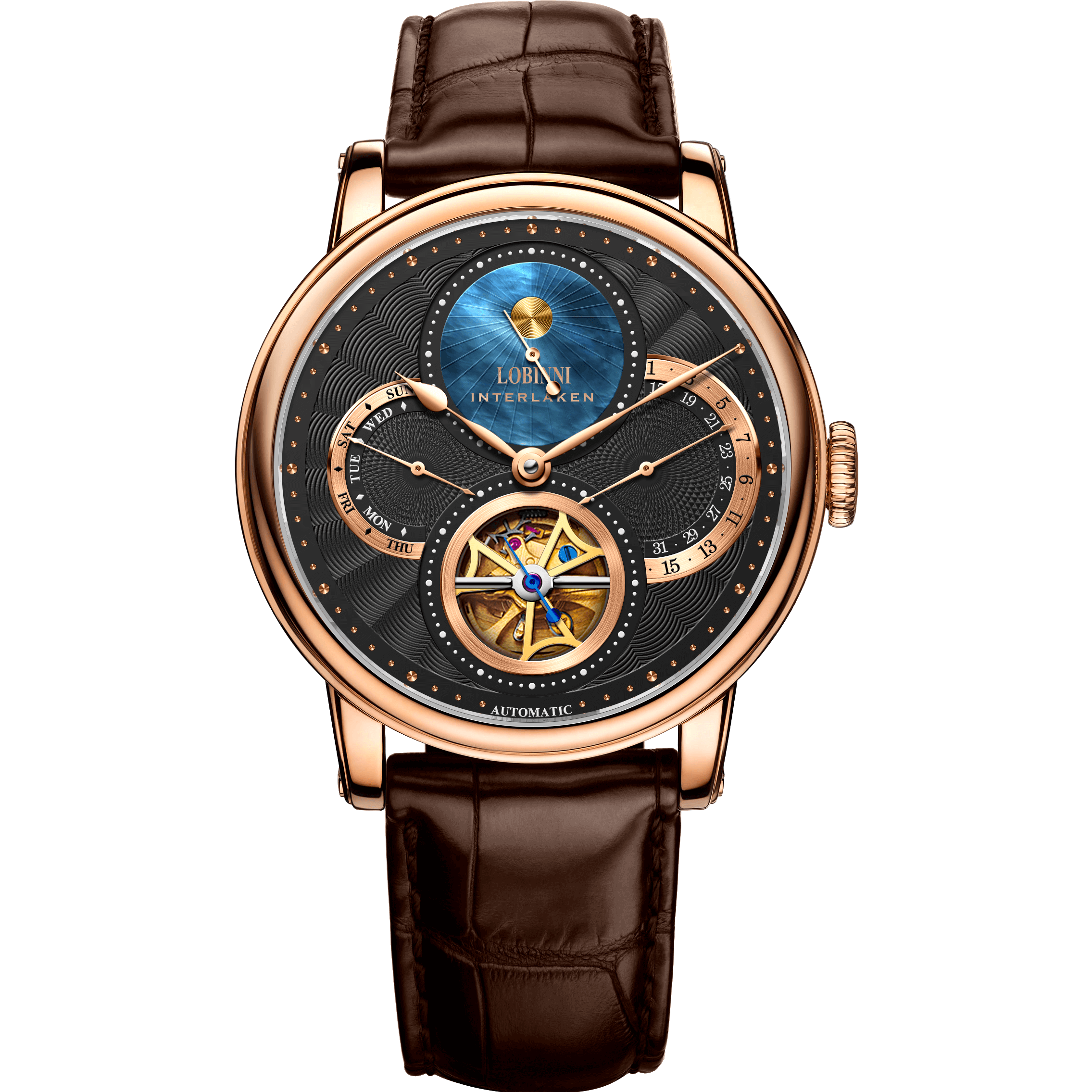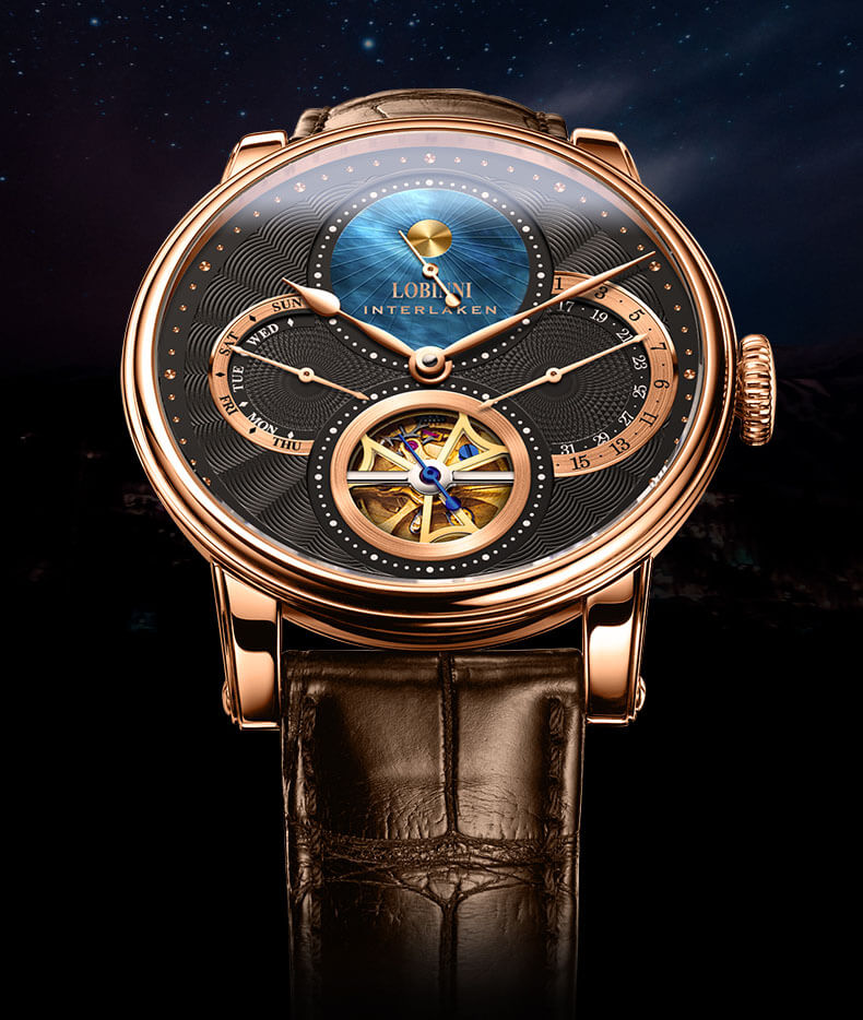Đồng hồ nam chính hãng LOBINNI LB16015G-D2 hàng mới fullbox ,kính sapphire,chống xước,chống nước 50m,Bh 24 tháng,máy cơ (automatic),mặt đen dây da nâu xịn