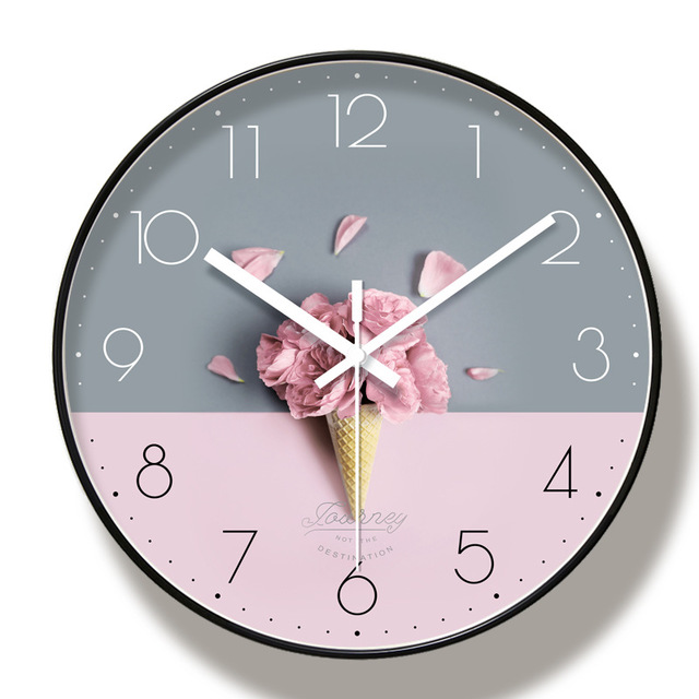 Giới thiệu Đồng hồ treo tường kim trôi phong cách Bắc Âu - hình kem hoa hồng - Tặng kèm Pin và Đinh Treo Thông Minh