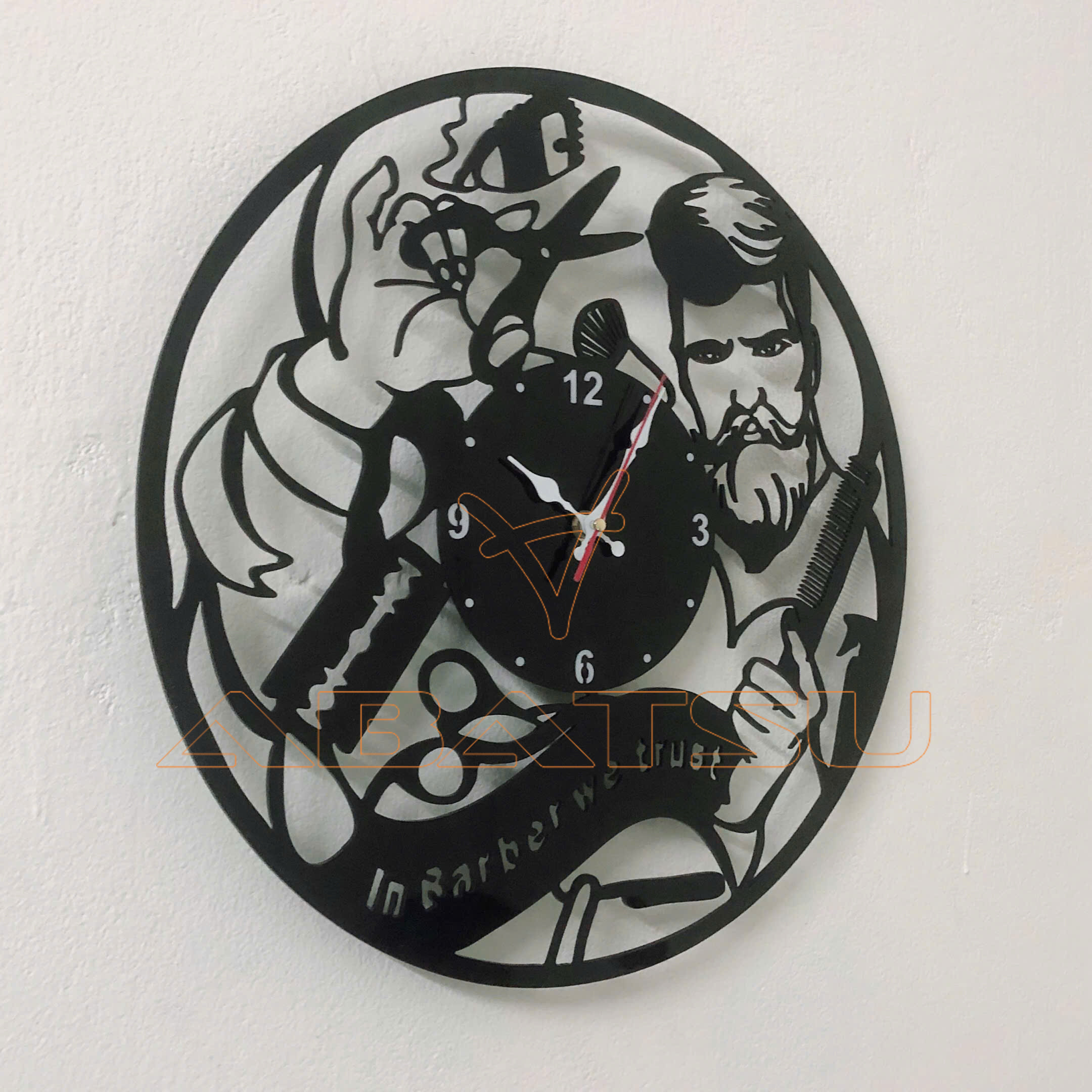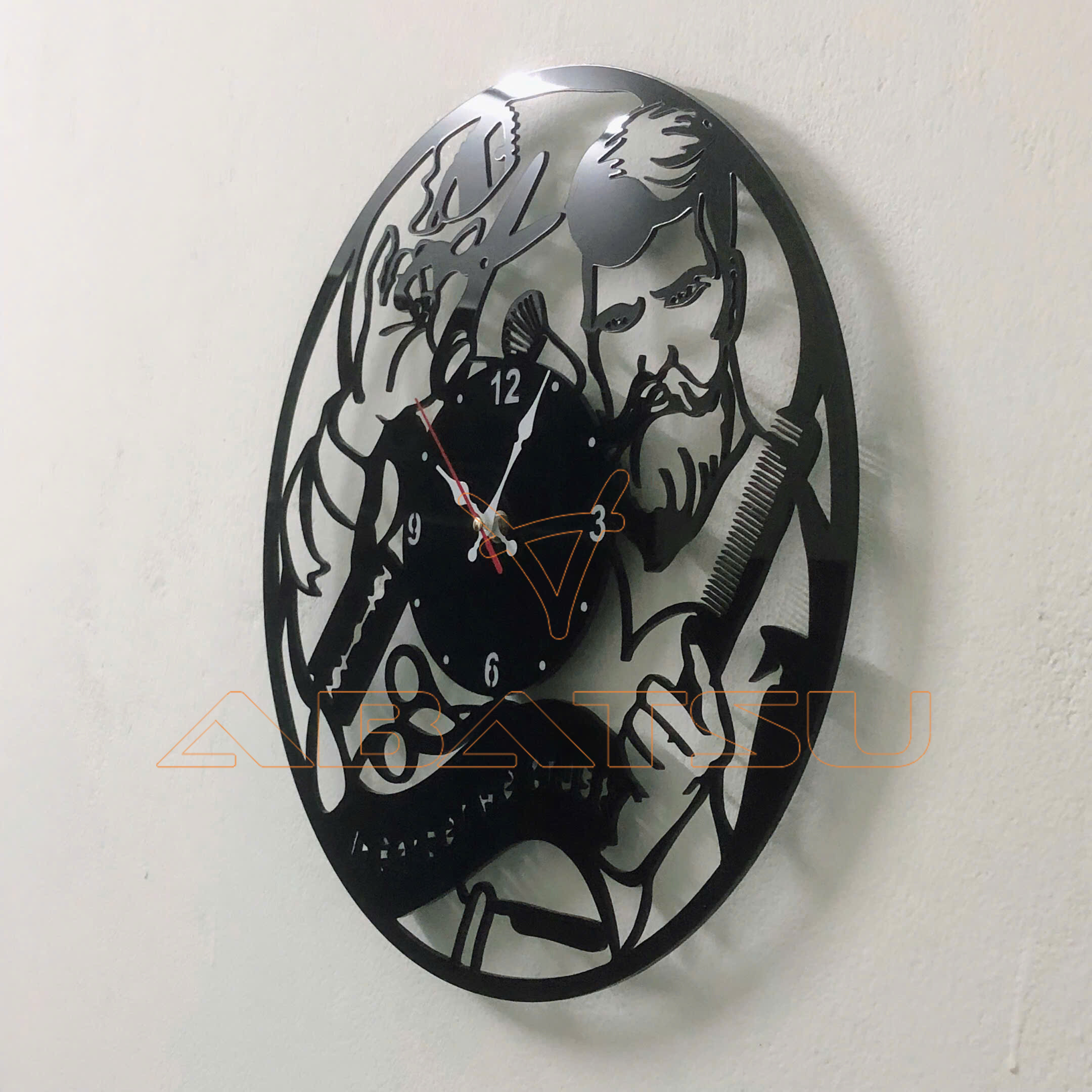 - Chất liệu Acrylic sáng bóng – Đẳng cấp và bền bỉ Chất liệu làm nên chiếc đồng hồ này là Acrylic sáng bóng, không chỉ bền mà còn dễ dàng lau chùi, giữ cho tiệm tóc của bạn luôn sạch sẽ và gọn gàng. Chất liệu này còn mang đến sự sang trọng và hiện đại, làm nổi bật mọi góc tường nơi chiếc đồng hồ được treo lên. Đây là một yếu tố không thể bỏ qua khi bạn đang tìm cách "trang trí tiệm tóc barber" của mình.